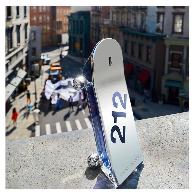É um catalisador inspirador e a desculpa perfeita para interagir, compartilhar e desfrutar. As festas estão se espalhando e se tornando onipresentes – isso é um sentimento e o carregamos no nosso interior. Os encontros sociais evoluíram; a festa não se limita às casas e clubes noturnos nos dias de hoje. As festas foram às ruas, tornando-se mais plurais e dinâmicas. A conexão comunal também acontece fora da exclusividade do clube e da intimidade da casa: a rua é o novo clube. Uma fórmula vegana: Para despertar o nosso espírito jovem, Carolina Herrera deu um toque moderno a uma emblemática família olfativa. Com 212 Heroes, nasce um novo tipo de Fougère – a espinha dorsal da perfumaria masculina – que poderíamos chamar de Fougère Frutado e Amadeirado. O perfume foi desenvolvido em torno de uma dupla improvável. “O Óleo de Gerânio, elegante e complexo, mistura-se com o Elixir de Pera, refrescante e espumante. Essa dupla irreverente injeta energia e otimismo na fragrância”, explica a equipe de perfumistas, formada por Michalon-Bertier, Juliette Karagueuzouglou e Carlos Benaim. O skate: um símbolo autêntico e atemporal: A embalagem anuncia a força inovadora de todo o projeto.